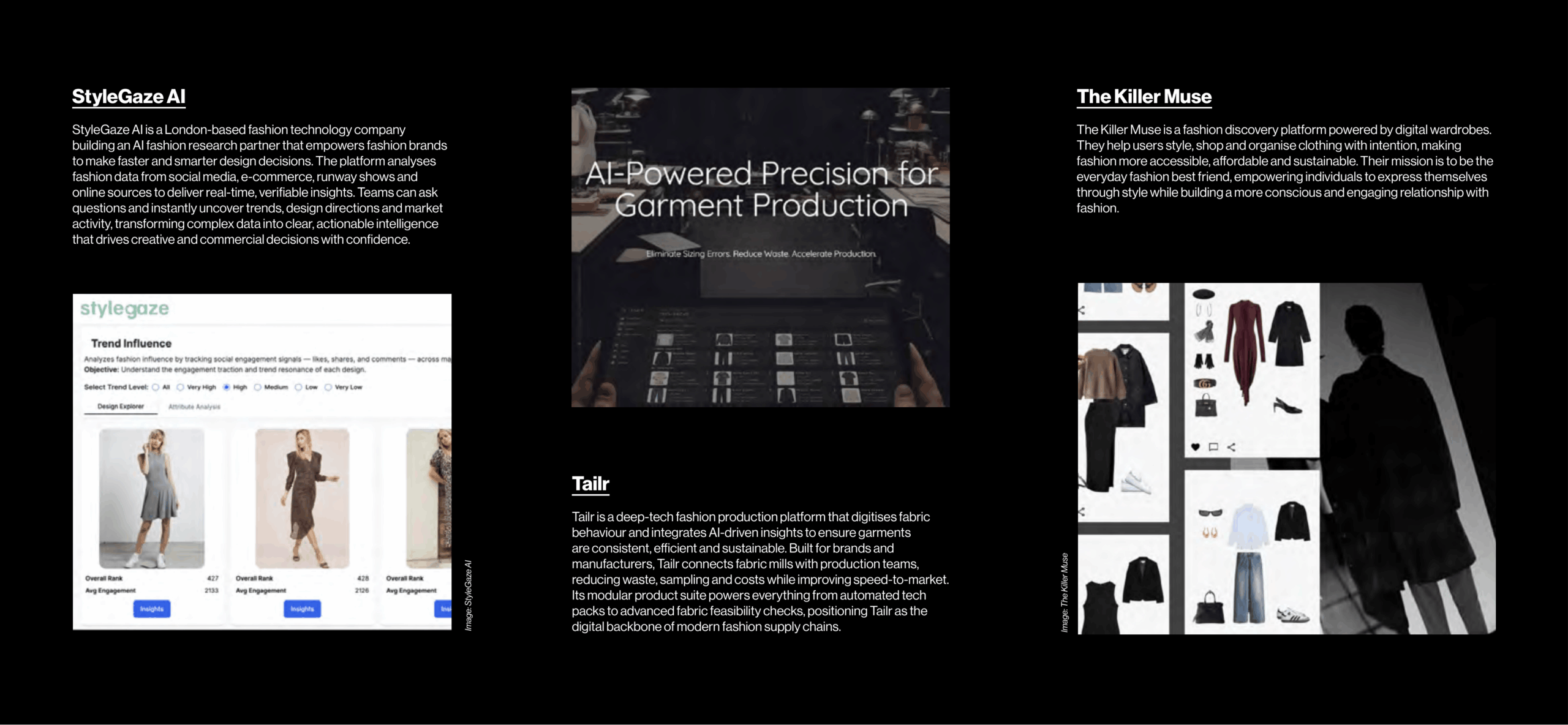 The Killer Muse is a fashion discovery platform powered by digital wardrobes. They help users style, shop and organise clothing with intention, making fashion more accessible, affordable and sustainable. Their mission is to be the everyday fashion best friend, empowering individuals to express themselves through style while building a more conscious and engaging relationship with fashion.